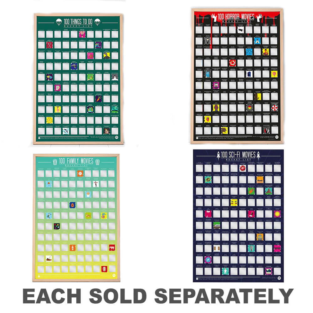 Von Star Wars bis Soilent Green, von Mad Max bis Matrix – dieses ultimative Sci-Fi-Rubbelposter ist die definitive Wunschliste mit 100 Filmen, die sich jeder Science-Fiction-Fan unbedingt ansehen muss, bevor er stirbt.