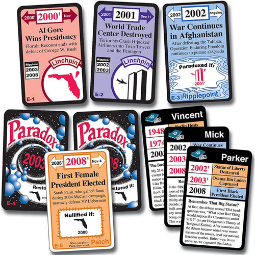 Eine 11-Karten-Erweiterung zu Chrononauts, die Timeline-Karten und Patches für die Jahre 2000 bis 2008 und neue Charaktere hinzufügt, die von Ereignissen in diesem Zeitraum betroffen sind. Publisher Blurb: Chrononauts ist mittlerweile über zehn Jahre alt, und man sieht ihm sein Alter an. Im 21. Jahrhundert ist viel passiert, aber die TimeLine endet bei 1999! Wir stellen Gore Years vor, eine 11-Karten-Erweiterung für Chrononauten, die die Zeitlinie von 2000 bis 2008 erweitert.