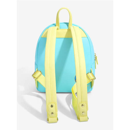 Das lebendige vordere Reißverschlussfach zeigt Clarice, die ein Lied singt, umgeben von tropischem Laub und gestickten Blumendetails. Während das Funkeln des Bühnenvorhangs um sie herum funkelt, sind Chip und Dale unten zu sehen, die sich wütend in die Augen blicken. Der Rest des Rucksacks trägt die Farben von Clarices Outfit, abgerundet mit glänzenden goldfarbenen Beschlägen und einem Porträt von ihr auf der Rückseite.