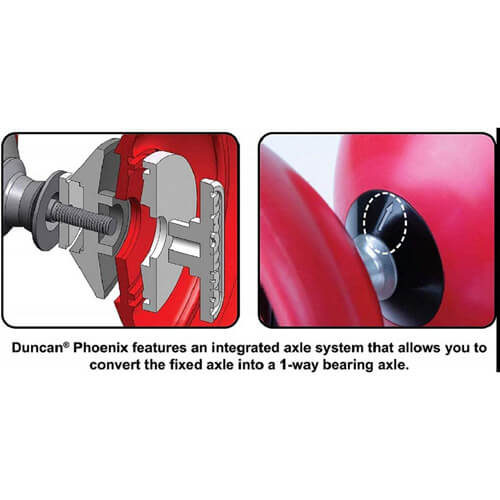 - AUSTAUSCHBARE LAGER: Diabolo-Spieler müssen sich nicht länger zwischen einem Diabolo mit fester Achse und einem 1-Wege-Lager entscheiden. Das einzigartige austauschbare Lagerdesign von Duncan Phoenix Diabolo ermöglicht es Ihnen, die Knöpfe der Achsen einfach von Hand anzuziehen, um die Achsen zwischen fest und drehend zu wechseln.