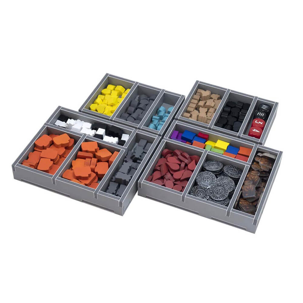 Hinweis: Einsatz für das Standard-Kaufspiel mit den Außenmaßen der Box von 23,1 x 23,1 x 7,0 cm und der Erweiterungsbox mit den Maßen 23,1 x 23,1 x 4,5 cm.