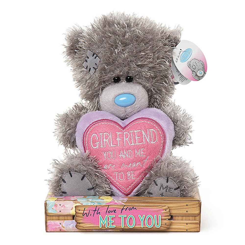 • 15cm Plüschteddy mit Kissenherz * Aufschrift lautet „Girlfriend, you and me are meaned to be“ *