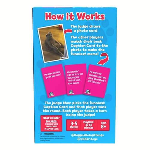 • Kommt mit lustigen doppelseitigen Fotokarten und der lustigsten Beschriftungskarte.