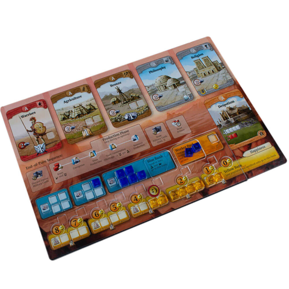 Wandern Sie durch die Zeitalter und stellen Sie sicher, dass Ihre Würfel und Werkstücke einen festen Boden haben. Unser auf die Neuauflage von Czech Games abgestimmtes Overlay sorgt dafür, dass alle Würfel an Ort und Stelle bleiben. Es passt in unseren Through The Ages Organizer.