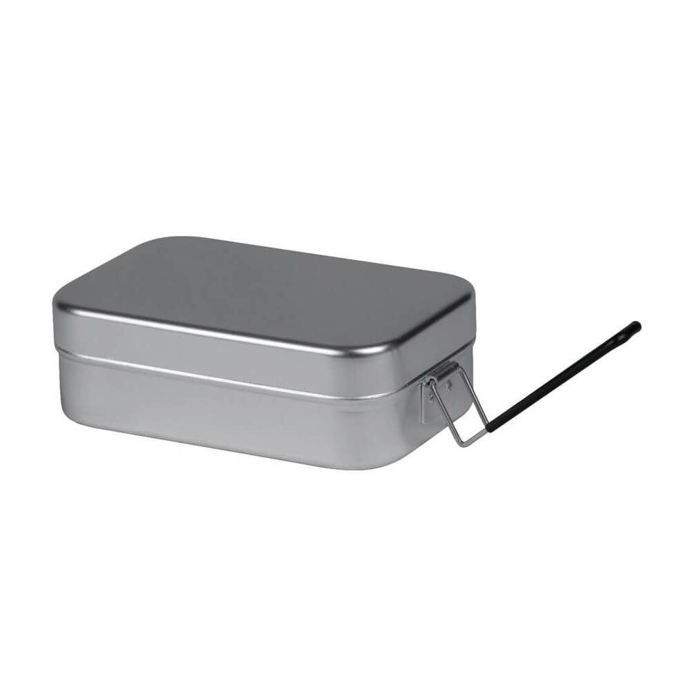 Leichte Kochgeschirrdosen aus Aluminium zum Verstauen von Wertgegenständen, Lebensmitteln und verschiedenen Utensilien. Kann auch zum Kochen von Wasser oder zum Kochen von Speisen verwendet werden. Der verstaubare Griff und die rechteckige Form erleichtern das Packen.