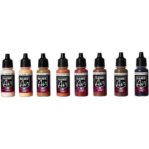 Enthält 8 Airbrush-fähige Game Air-Farben, von denen 4 speziell für dieses Set entwickelt wurden. Enthält eine detaillierte Schritt-für-Schritt-Malanleitung von Angel Giraldez, die den Prozess des Malens männlicher und weiblicher Gesichter zeigt. Farben 72.703 Pale Flesh 72.715 Hexed Lichen 72.743 Beasty Brown 72.744 Dark Fleshtone 72.769 Flesh 72.770 Burned Flesh 72.771 Barbarian Flesh 72.772 Red Terracot
