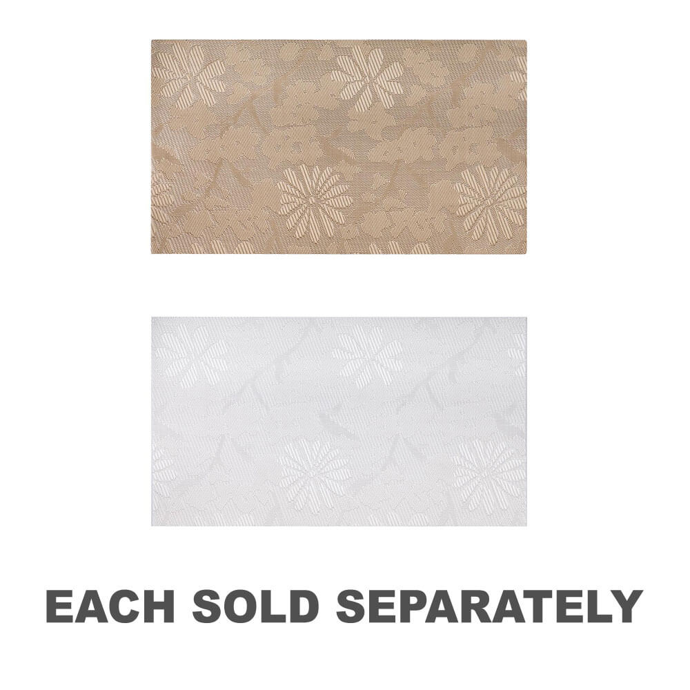 Die silbernen und weißen Blumen-Tischsets von Wilkie Brother bestehen aus pflegeleichtem, abwischbarem PVC. Seine strukturierten Gewebe und Farben passen zu den unterschiedlichsten Geschmäckern. Das Set eignet sich hervorragend für jeden Anlass und den täglichen Gebrauch.
