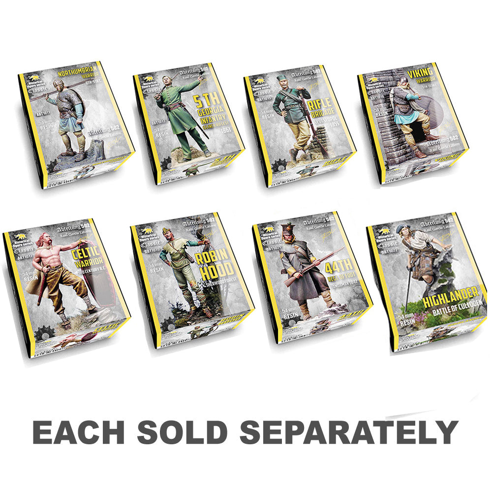 • Product Type: It is an unpainted and unassembled resin figure, intended for hobbyists to build and paint themselves. Some specific examples in this series include the "44th Regt. of Foot Gandamak 1842" and "Hero Saxon Warrior 5th C.".