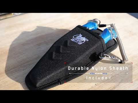 • Visible full-tang construction with non-slip Cuda scale pattern grips