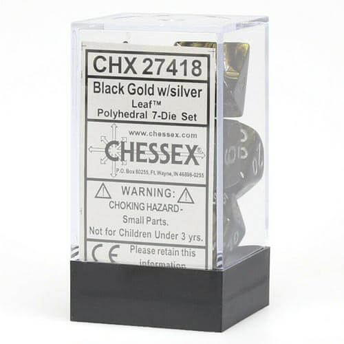 D7 Die Set Dice Leaf Polyhedral (7 Dice/Black Gold/Silver)