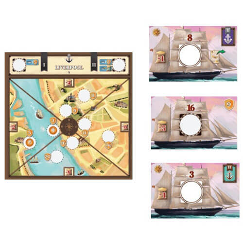 The player board features a new type of worker - farmers - and different paths await on the game board to confront you with more choices. Will you take the road with buildings or a path past farmers? Maybe you'll have the chance to use your cows - well, the strength on your cow cards - to help farmers, getting them on your side and adding grain, a new type of resource, to your income, with grain being used for boat and city tiles