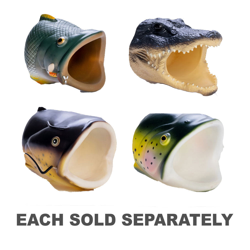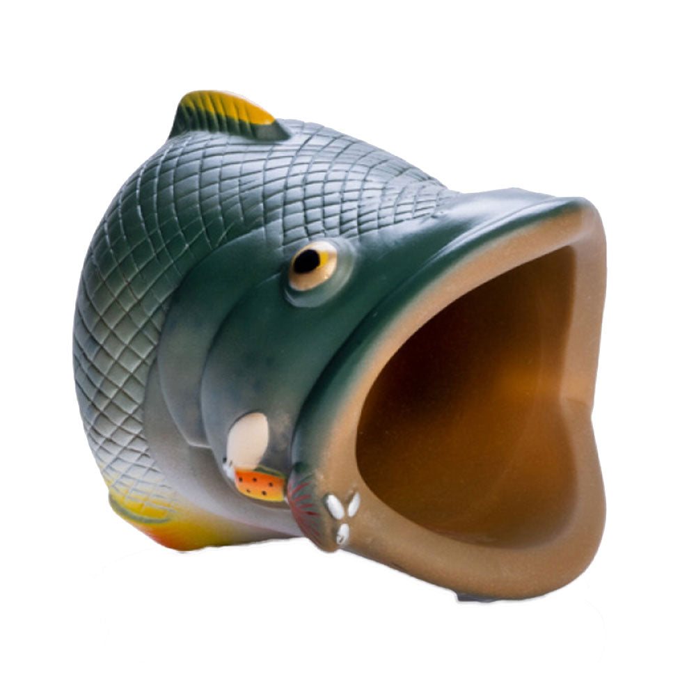 Fin-tastic largemouth bass can cooler made from insulating vinyl Features realistic scale texture and mottled green colouring. Novelty can cooler designed as if bass is swallowing your drink!