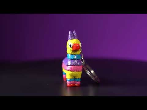 • Features a colourful llama with fringe style stripes on a traditional keychain ring