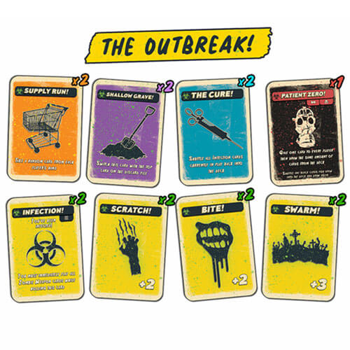 • Includes 6 x Zombie Weapon Cards, 2 x Infection Cards, 2 x New Survival Cards, 2 x New Power Card, 1x New Predicament Card, 2 x New Healing Cards, Rule Page