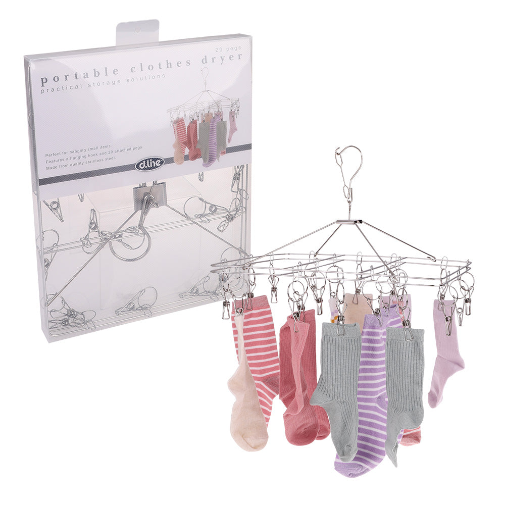 Stainless Steel Rectangle Clothes Dryer w/ 20 Pegs (37x30cm)