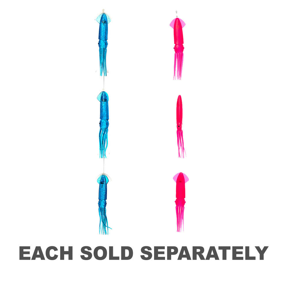 One of the largest biomass species on earth is the squid. Fishing squid on a daisy line is highly effective. Outrigger and Shotgun positions are the most effective for Squid Daisy Chains.