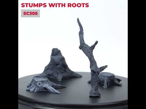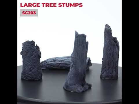 • Quatre souches d'arbres secs d'une variété d'arbres européens, avec une texture d'écorce détaillée et un intérieur. Idéal pour placer sur des dioramas, en choisissant les tons pour représenter des environnements humides ou secs, ajoutant même des touffes ou de la mousse à partir de références de paysages Vallejo.