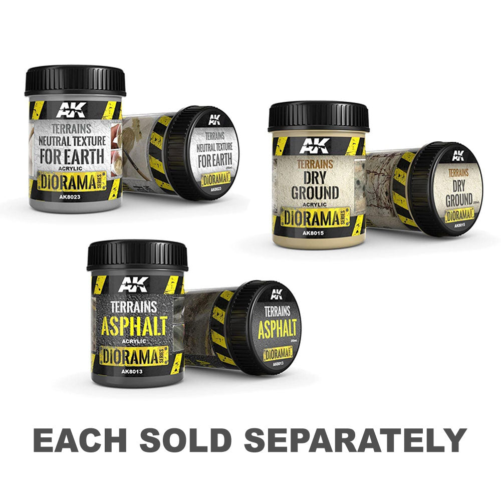 Produit acrylique pour les textures dans les dioramas. Des résultats parfaits en couches minces ou épaisses. Il peut être dilué avec de l'eau ou un diluant acrylique pour améliorer son débit.
