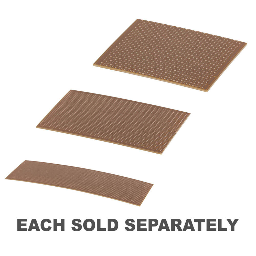 Un moyen à faible coût de construire des prototypes ou des projets. Le tableau phénolique a une matrice de trous frappés dans les pistes de cuivre.