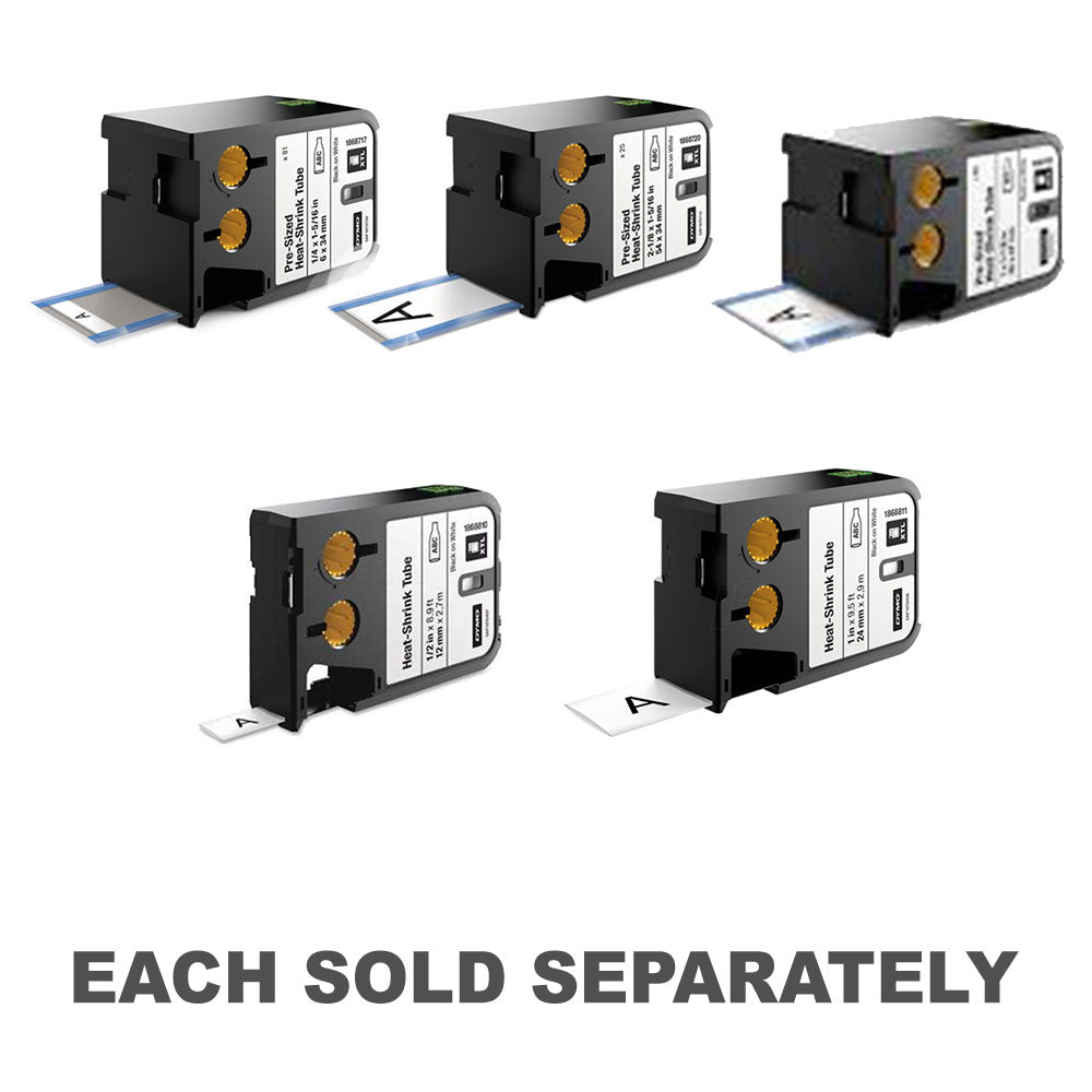 Dymo xtl noir sur tube de rétrécissement thermique blanc