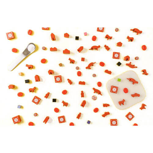 - Comprend plus de 350 pièces en bois, 55 pièces en métal et 90 grains de café en résine.