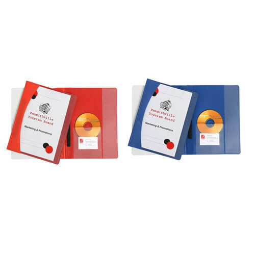 - Semi-rigide avec une couverture avant claire. Couverture arrière à l'intérieur avec poche verticale, porte-cd et porte-carte de visite.