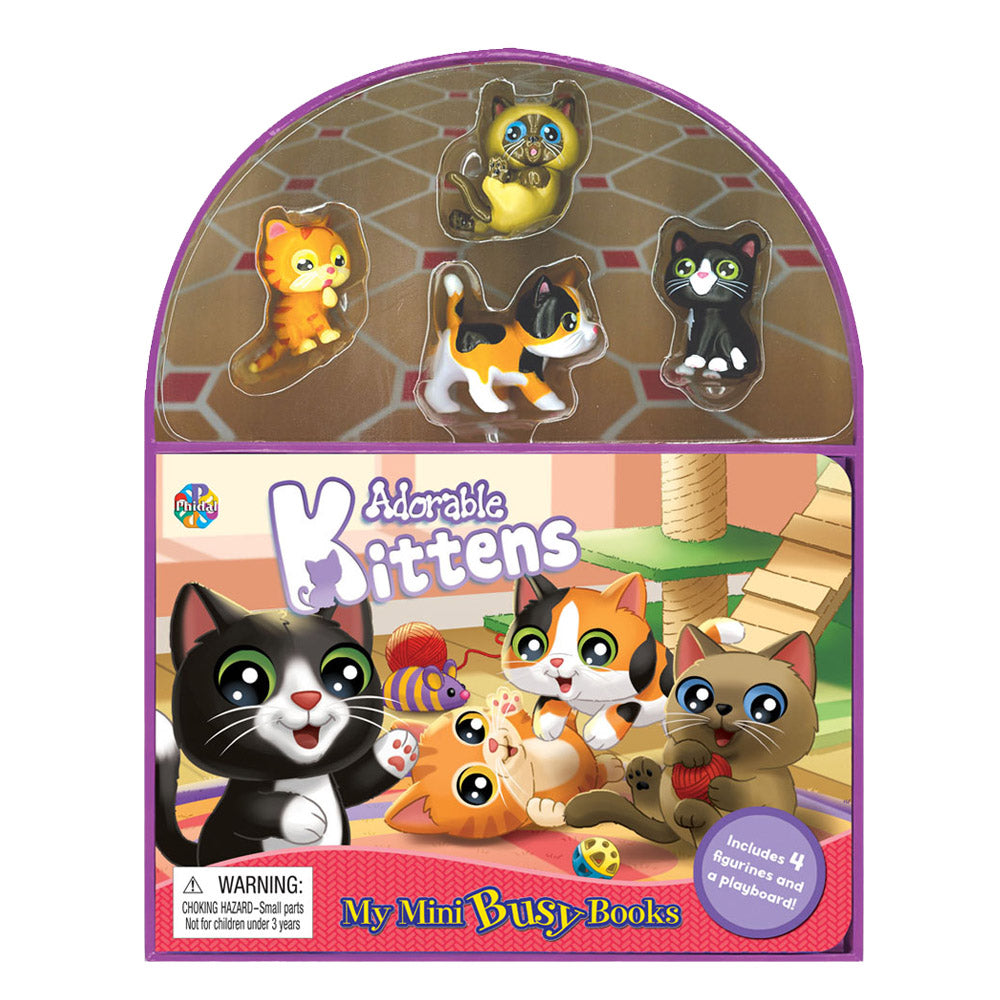 Four friendly kittens can't wait to play! They chase a dragonfly in the garden, a ball in the playroom, and more! A fun storytelling kit, My Mini Busy Books include a brightly illustrated storybook, four figurines, and an upright playboard. Read the book, and then use the figurines and playboard to create exciting new stories!