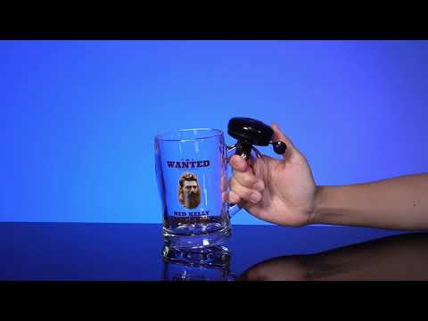 • Chasse de bière en verre avec une cloche noire attachée à la poignée - sonnez-la quand il est temps pour un autre verre!