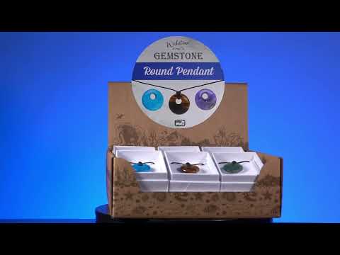 Collier en cordon de cuir de qualité avec pendentif rond en pierre précieuse. L'article peut varier entre 6 pierres précieuses : fluorite, hématite, howlite, améthyste, quartz rose, œil de tigre doré.