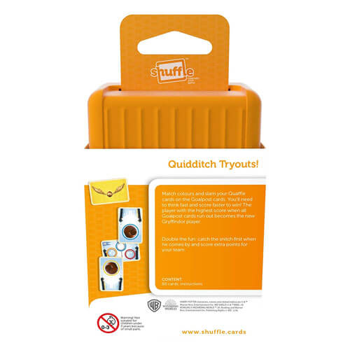 Essais de Quidditch ! Faites correspondre les couleurs et claquez vos cartes Souaffle sur les cartes Goalpost. Vous devrez penser vite et marquer plus vite pour gagner ! Le joueur avec le score le plus élevé lorsque toutes les cartes Goalpost sont épuisées devient le nouveau joueur de Gryffondor. Doublez le plaisir : attrapez le vif d'or en premier lorsqu'il passe et marquez des points supplémentaires pour votre équipe.