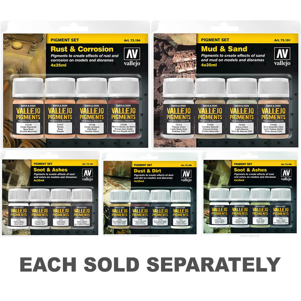 • Les pigments de Vallejo, une sélection de terre naturelle et de pigments synthétiques.