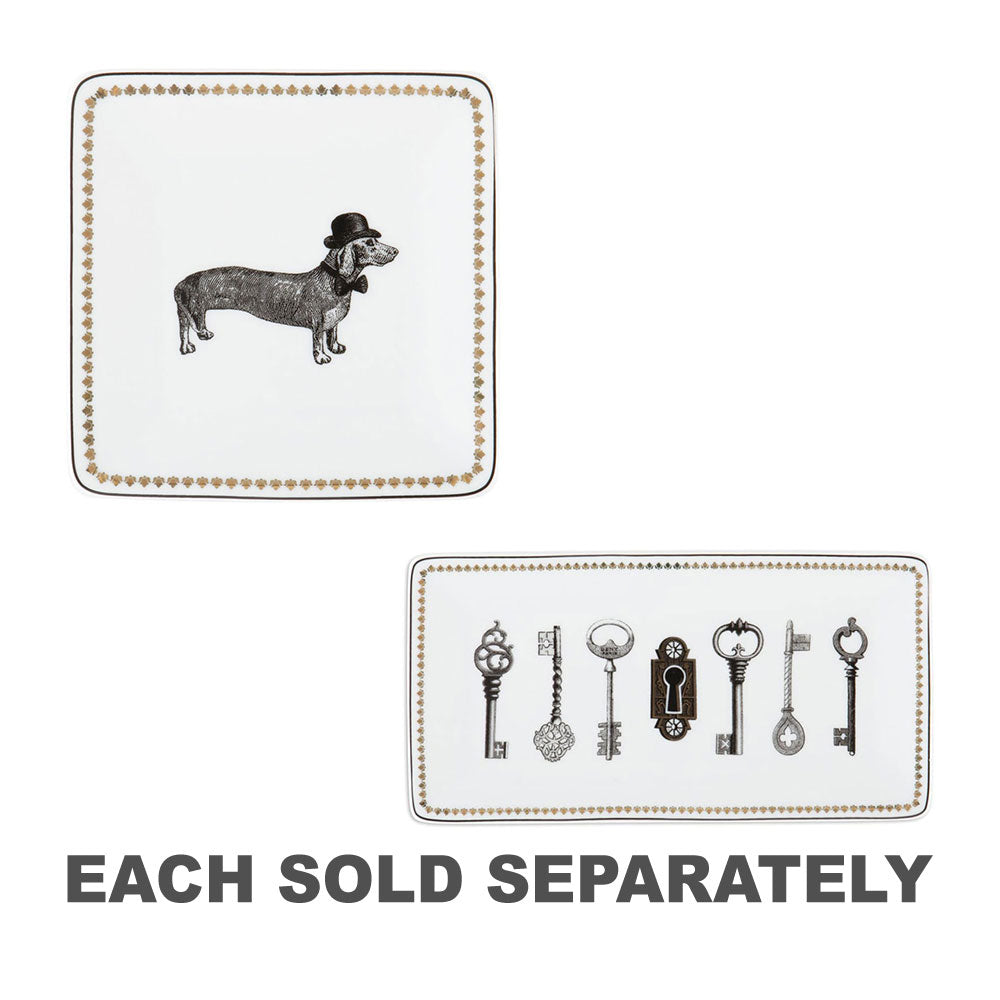 - Grotere formaat van het vierkante porseleinlade van Alice Scott, biedt meer oppervlakte voor organisatie en display