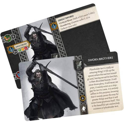 De beëdigde doos van de gezworen broers vormt de kernkracht voor de nachtknecht in het A -nummer van Ice and Fire: Tabletop Miniatures Game. Hun sterke pantseruitbuigingen blaast en hun training voorkomt dat ze gemakkelijk wegrennen. Aan de offensieve kant van de weegschaal is hun dapperheid met het Greatsword ongeëvenaard, die kritische stakingen afhandelt en zelfs het zwaarste vijandelijke pantser sundert. Ondertussen laat de horloge -kapitein -bijlage de eenheid twee geloften tegelijk aan het apparaat hebben toegewezen.