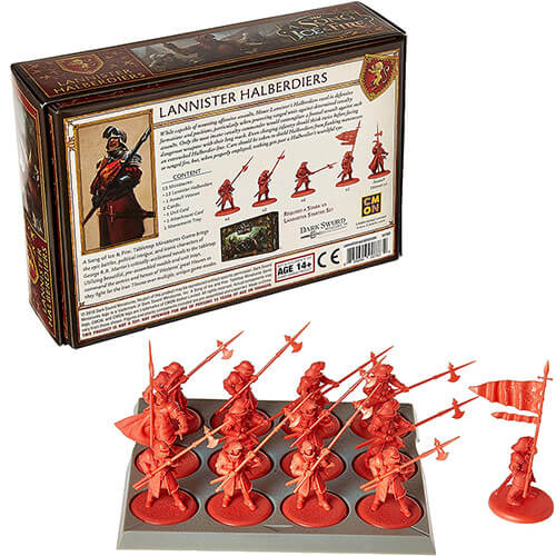 De Lannister Halberdier Unit Box For the A Song of Ice and Fire: Tabletop Miniatures Game geeft Lannister Commanders nieuwe opties voor hun krachten. De eenheid is formidabel in zowel aanvallende als defensieve capaciteiten, niet het verliezen van dobbelstenen nadat hun eerste rang is vernietigd, en het kunnen schrap zetten voor een vijandelijke aanklacht, waardoor ze een preventieve aanval op hun vijanden worden gegeven. De toevoeging van een bevestiging van een aanvalsveteraan -eenheid geeft hen blijvende kracht zodra de strijd is voldaan, waardoor extra dobbelstenen worden toegevoegd aan hun melee -aanvallen.