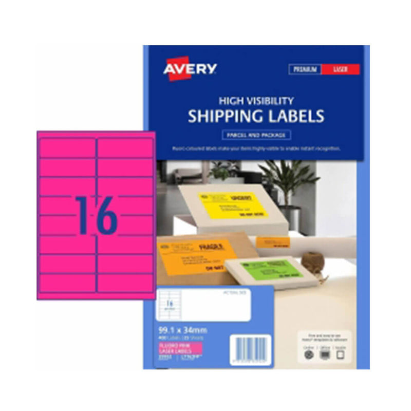 Als je wilt dat iets opvalt, zal alleen fluor van hoge zichtbaarheid doen en Avery fluor roze scheepvaartlabels zullen niet falen om de aandacht te trekken. Ideaal voor pakketten die dringend moeten worden gelezen, of zelfs voor het markeren van fragiele pakketten waarbij u de koerier of ontvanger wilt om voor hen te zorgen. Deze fluorroze labels kunnen worden afgedrukt met uw eigen aangepaste bericht, zodat ze geweldig zijn voor het labelen van pakketten en andere belangrijke e -mail. Ze zijn ook ideaal voor het markeren van documenten en bestanden die speciale aandacht nodig hebben. Beschikbaar in een labelformaat van 99,1 x 34 mm met 16 labels per vel en een reeks andere kleuren en maten die aan uw etiketteringsbehoeften voldoen. Gebruik eenvoudig de gratis en eenvoudig te gebruiken Avery Design & Print Online Software om uw labels in minuten te ontwerpen en af te drukken.