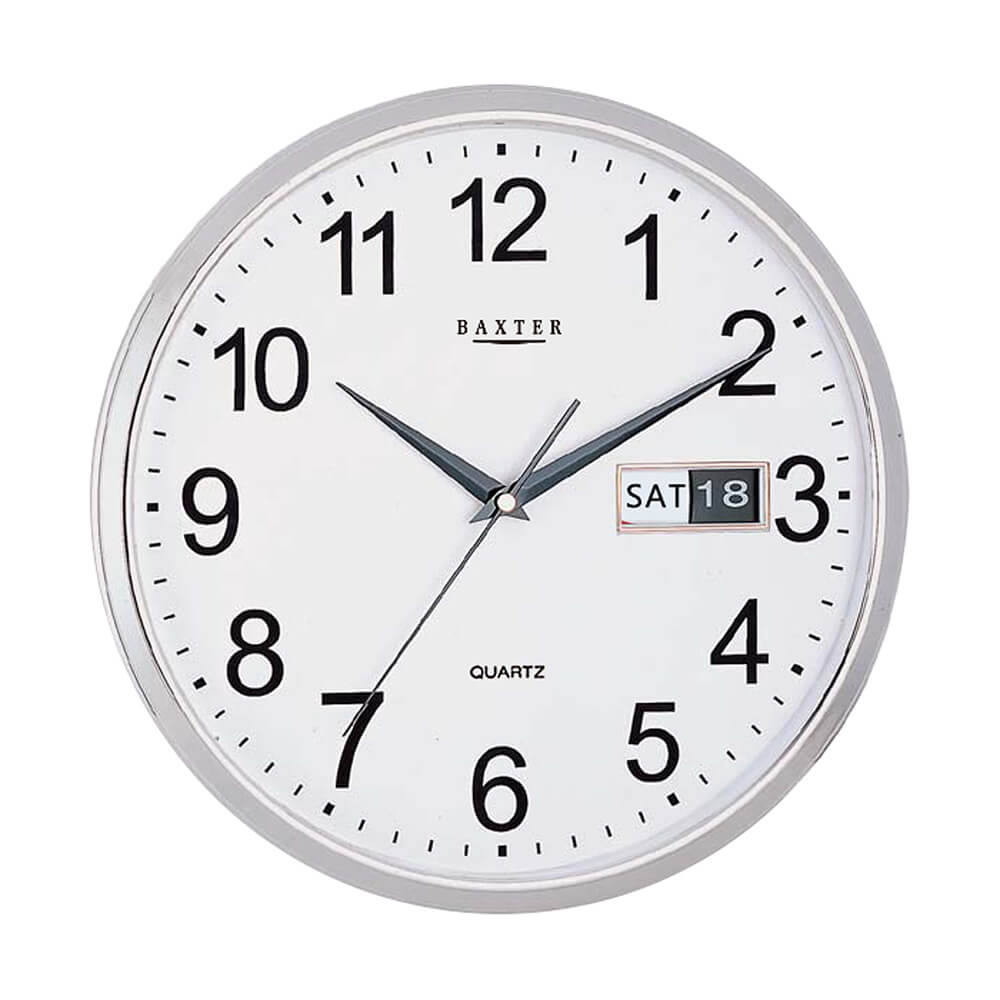 Baxter Windsor Dag en datum wandklok zilver 32 cm
