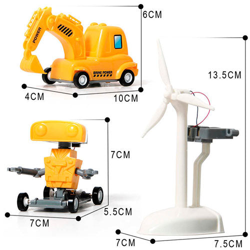 - Deze kit komt met de mogelijkheid om een auto, een robot of een windmolen te bouwen, die allemaal worden voortgestuwd door pekel!