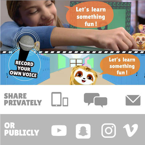 Verplaats de schattige karakters tussen de camera en het groene scherm. De app animeert de personages in realtime en je kunt voice -over of muziek toevoegen om een unieke animatiefilm te maken. Omdat de gezichten van de kinderen niet in het schot staan - alleen de schattige stripfiguren - is het veilig om online te publiceren als u dat wilt doen. U kunt er ook voor kiezen om gewoon te delen met uw particuliere sociale media -accounts om te delen met vrienden en familie.