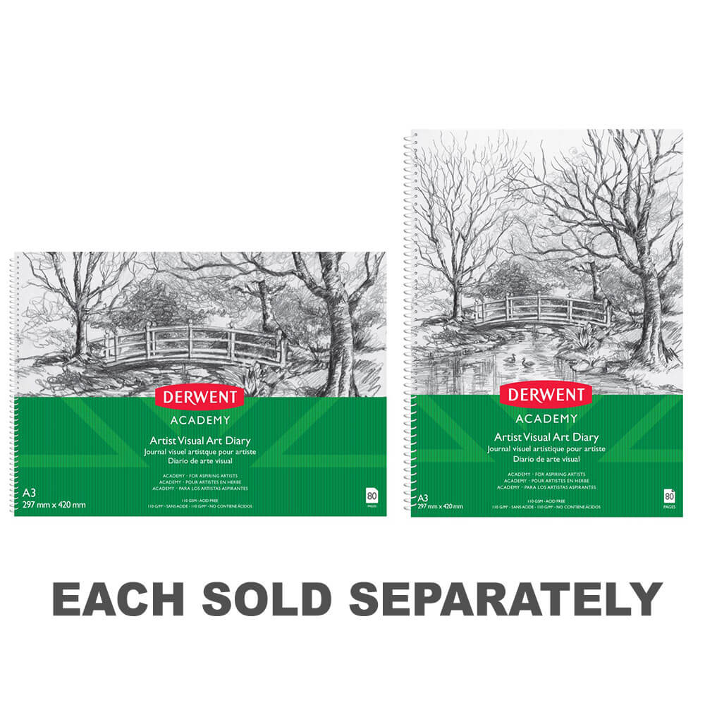 Dit Derwent Academy Visual Diary bevat 80 pagina's en is perfect voor tekenen, kleuren en schetsen.