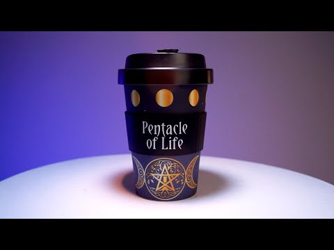 • Bijpassende zwarte anti-spill-deksel en beschermende siliconenband met 'Pentacle of Life' in een opvallend wit lettertype.