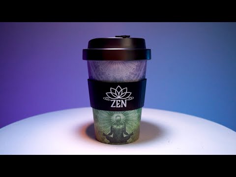 • Bijpassende zwarte anti-spill-deksel en beschermende siliconenband met witte 'Zen' & Lotus-symbool.