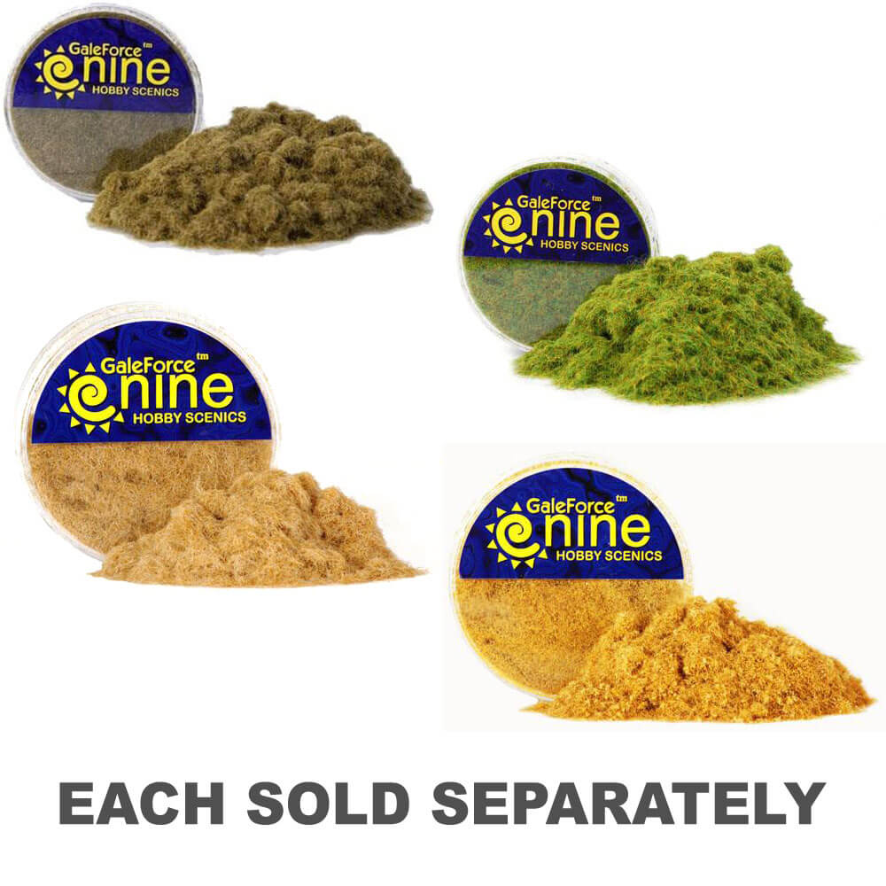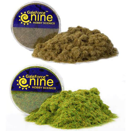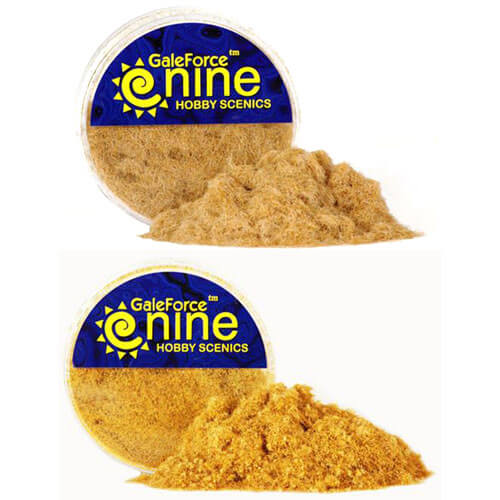 - Gale Force Nine's uitgedroogde stro statisch grasmengsel geeft je een optie om droge, koude of droge klimaten te vertegenwoordigen.
