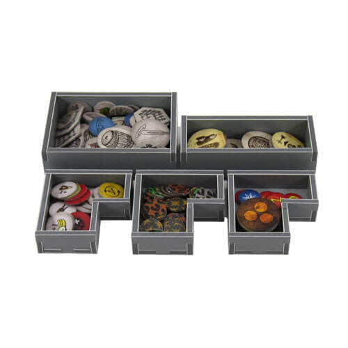 - Plaats compatibel met Robinson Crusoe® en de reis van de Beagle Vol. 1 ® Uitbreiding. Het ontwerp biedt zowel efficiënte opslag als verbeterde gameplay. De trays kunnen tijdens het spel worden gebruikt en ze helpen de opzet en de opruimingstijden aanzienlijk. De regels en boards fungeren als een deksel bovenop de laden. Dit product bestaat uit een flat-pack van 4 evacore vellen. De laden vereisen montage, wat snel en leuk is, met behulp van gewone PVA -lijm. Gedetailleerde instructies zijn opgenomen in het pakket. Opmerking: invoegen ontworpen voor game met externe doosafmetingen van 29,4 x 29,4 x 7,2 cm.