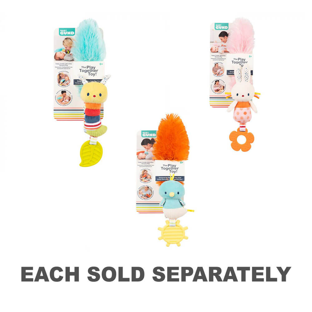 Gepresenteerd op een backing -kaart van het merk, heeft dit eerste speelgoed voor baby een zachte veren, kreuk, rammelaar, veilige siliconenteltether en pluche speelgoed in één! Ontworpen om te troosten, kalmeren en strelen en met Gund's kenmerkende zachtheid, houd de baby vermaakt met een tickler speelgoed uit de levendige Tinkle Crinkle -collectie.