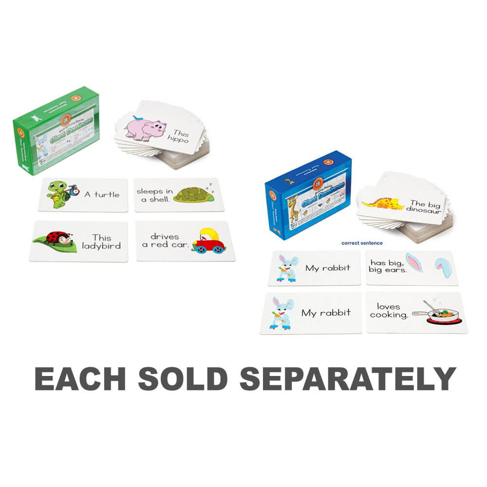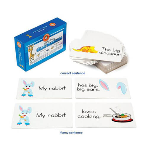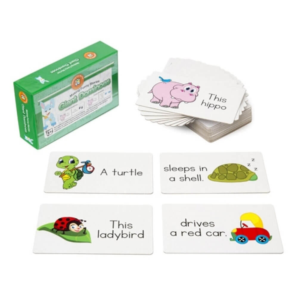 Dit leren kan leuk zijn om nog steeds verhalen te maken, is leuke domino's zijn een geweldig leermiddel dat kan worden gebruikt om te leren over de constructie van de zin. Elke zin wordt opgesplitst in 2 secties en kan worden afgestemd op het juiste einde of je kunt creatief worden en matchen met een ander einde. Deze kunnen binnen of buiten worden gebruikt, omdat de stoffen mat wordt ondersteund door vinyl die gemakkelijk schoon kan worden geveegd.