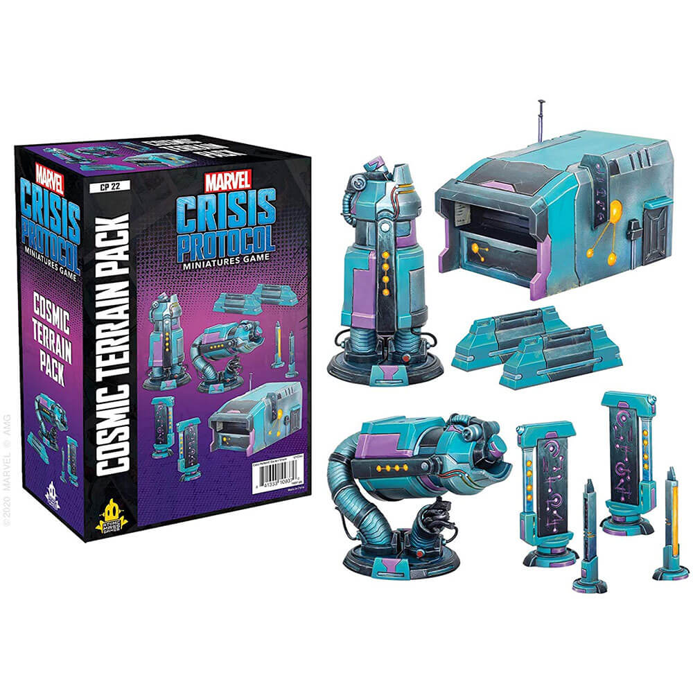 Neem je Marvel: Crisis Protocol Battles naar New Worlds met het Cosmic Terrain Pack. Dit pakket bevat een groot aantal zeer gedetailleerd miniaturen terrein, zodat u het perfecte kosmische landschap kunt creëren voor uw superkrachtige confrontatie in de galactische werelden van het Marvel Universe.