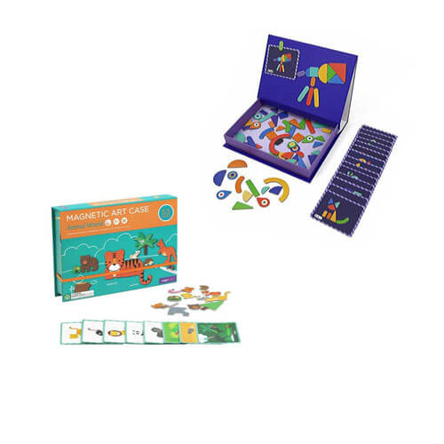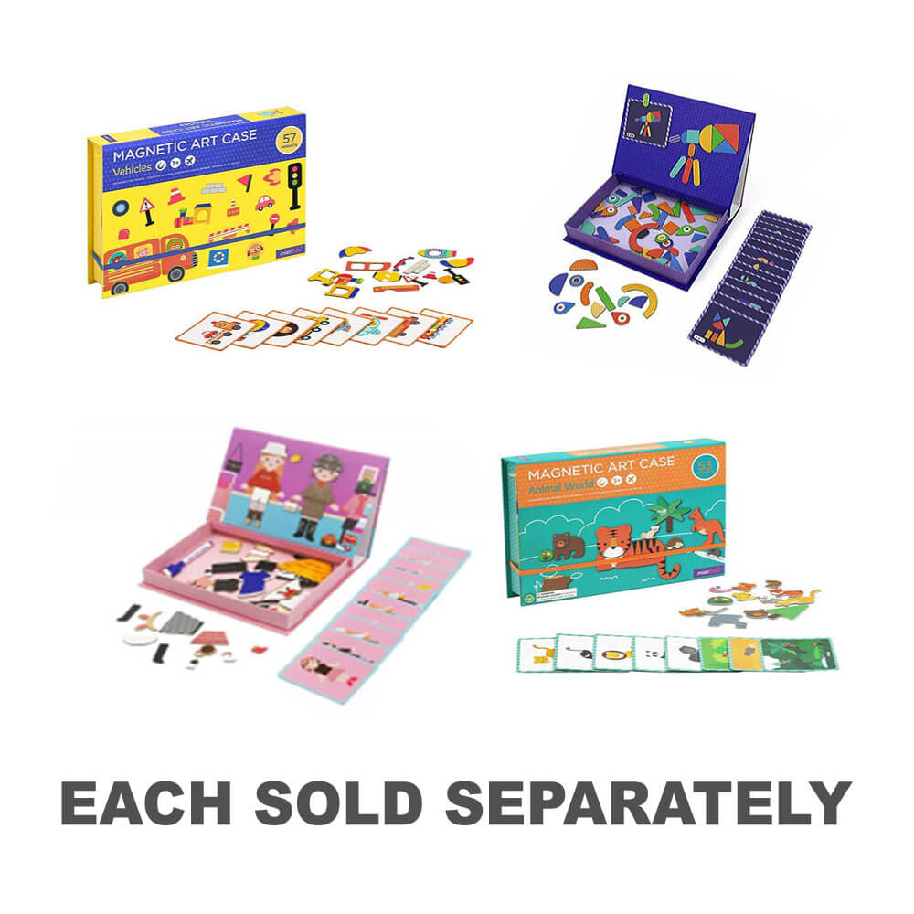 Een educatief magnetisch spel in een geval van het voertuigthema om de verbeelding van kinderen te stimuleren en kleintjes te inspireren om hun eigen verhalen te maken met behulp van magneten. Deze zaak is handig op een handige manier verpakt en gemakkelijk te dragen tijdens reizen, bij de auto en onderweg. Zodra de behuizing is geopend, kan deze worden "getransformeerd" in een groot wip-clean bord, waardoor kinderen hun verhalen kunnen tekenen.