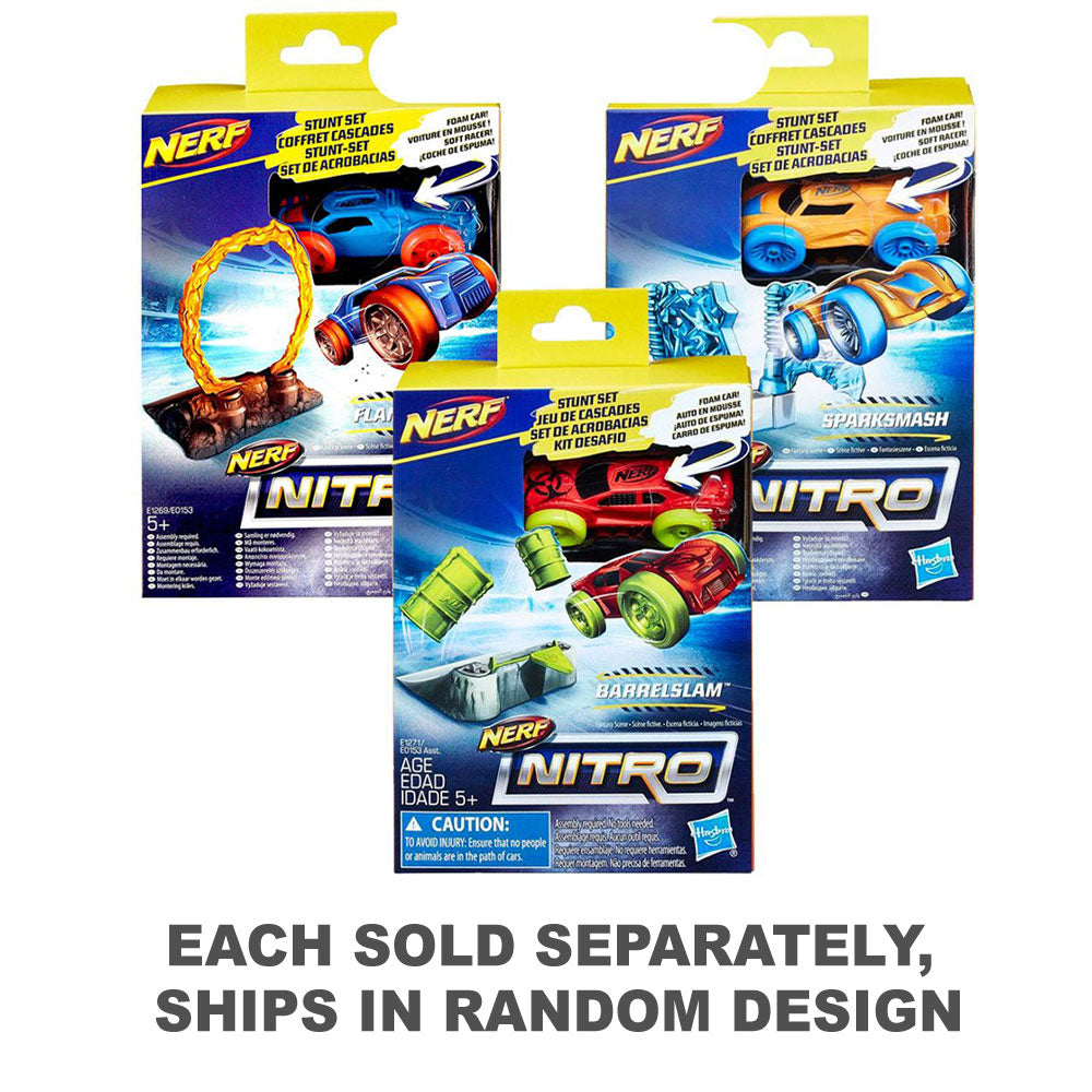 De Nerf Nitro Single Stunt & Car Set biedt een enkele schuimauto en een stunthelling voor epische autertrucs. Lanceer de auto vanuit de blaster en voer gedurfde stunts uit met snelheid en precisie. Een leuke toevoeging aan Nerf Nitro Play.