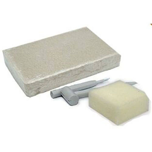 Kit bevat een gips/zandblok, schraapgereedschap en borstel.