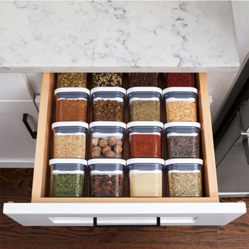 De 4-delige mini-popcontainerset van Oxo Good Grips is gemaakt om gedroogde kruiden en kruiden fris, netjes en binnen handbereik te houden. De push-knop luchtdichte afdichting en ruimte-efficiënte ontwerpstapel perfect met alle popcontainers. Nu volledig vaatwasser veilig, met handige vullijnen, is deze must-have set de organisatie naar het volgende niveau. Popcontainers zijn niet alleen voor keukens, gebruik ze overal waar u organisatie wilt. Gebruik voor de beste resultaten altijd de knop om te openen en te sluiten. Draag geen popcontainers bij het deksel.